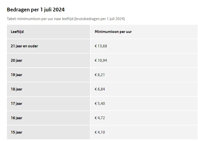 Vanaf 2024 geldt het volgende overzicht: